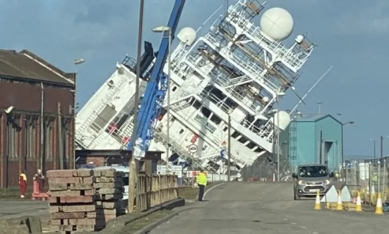 Ship Petrel According to the newspaper The Independent, it seemed to tilt roughly 45 degrees while in dry dock at Imperial Dock in Leith, Edinburgh. According to the publication, 12 people were treated at the dock and released while another 21 people were brought to the hospital with injuries.